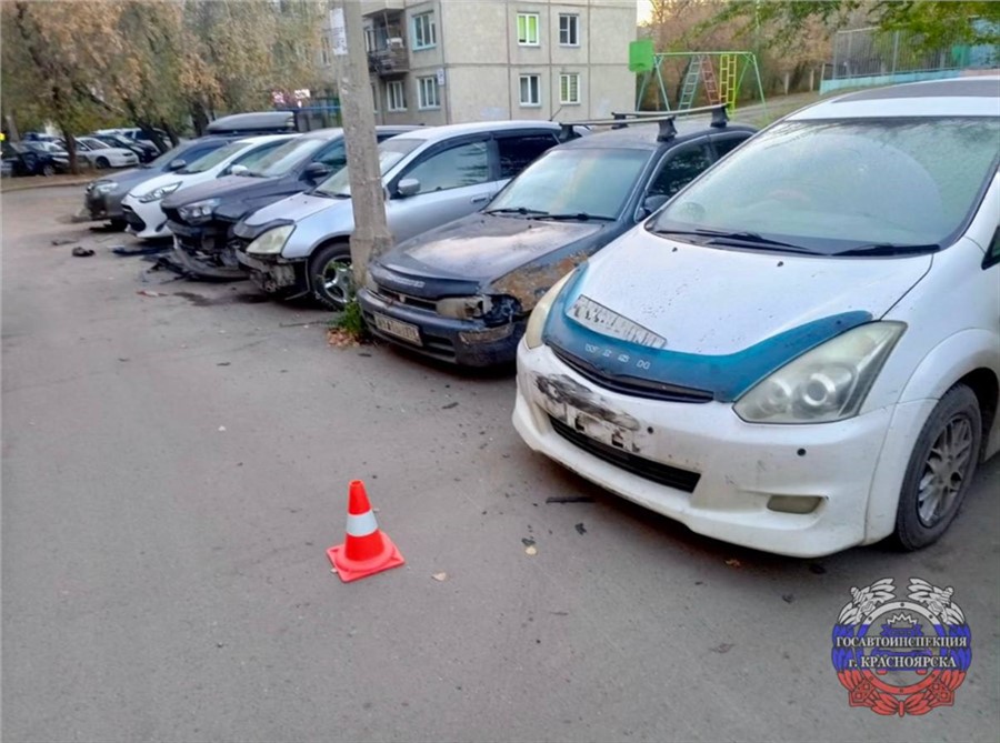 В красноярском микрорайоне Черёмушки нетрезвый водитель «Тойоты» уснул за рулем и допустил столкновение с 7 припаркованными легковыми иномарками. Об этом сообщили в ГАИ.