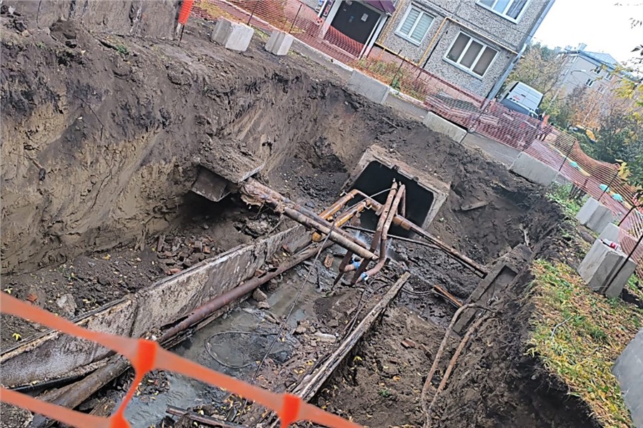 Основной объем работ сейчас проводится на участках в районе домов № 39, 41, 41а, 43 по ул. Тельмана и по ул. Комарова, 7 и 7а. Подрядчики проводят здесь земляные работы, разработку котлованов, а также разбирают бетонную конструкцию коллектора. Из-за практически разрушенных сетей в коллектор попала вода, мусор, на трубах значительные повреждения, а некоторые участки самого коллектора вообще отсутствуют. Для начала работ по очистке коллектора и замене трубопроводов необходимо, чтобы конструкция пробыла некоторое время под открытым воздухом.