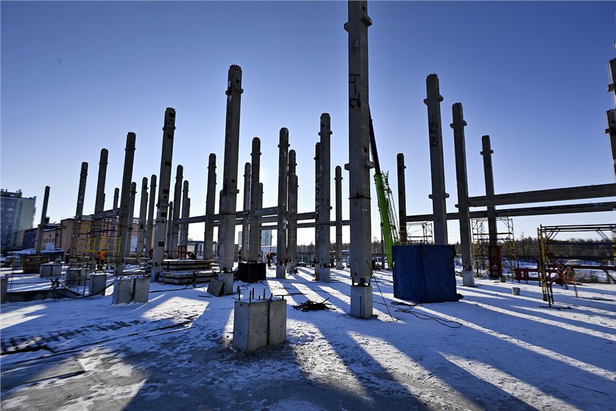 «Материалы изготовлены на красноярском комбинате железобетонных и металлических конструкций. Они доставлены в Норильск и находятся на площадке складирования. Имеющегося объема хватит на четыре этажа, как раз до начала следующей летней навигации. Учитывая достаточно большой объем работы, полностью каркас будет смонтирован к середине либо к третьему кварталу следующего года. Параллельно будут смонтированы и уложены колонны, по ним ригель. По ригелям плиты перекрытия и стеновые панели, и так будет продолжаться с этажа на этаж. Работы, которые выполнялись до этого, стороннему глазу были не очень заметны, но достаточно трудоемки. Особенно устройство свайного основания, а когда уже растет само здание, видно невооруженным глазом, что определенный прогресс достигнут. При этом порядка 30 процентов стоимости строительства приходится именно на свайные основания», — рассказал Владимир Ерохин.