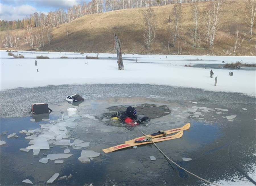 «Лёд толщиной не более 4 сантиметров проломился, мужчина упал в воду и утонул. 14 октября во время поисковых работ водолазы обследовали 400 кв. м. дна водоема. Тело найдено, извлечено из воды и передано сотрудникам полиции», — рассказали в КГКУ «Спасатель».