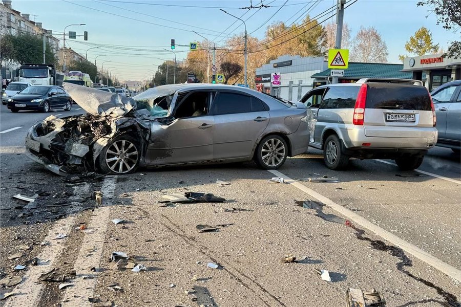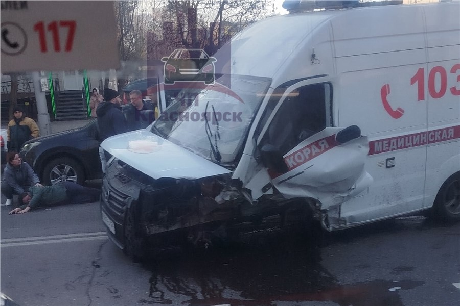 В Красноярске люди пострадали в серьезной аварии с участием машины скорой медицинской помощи. Судя по камерам наблюдения, ДТП произошло около 14:30 сегодня, 17 октября.