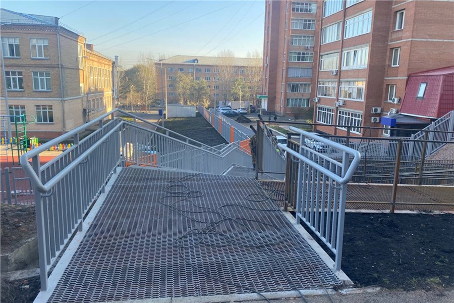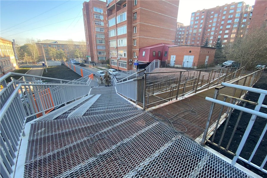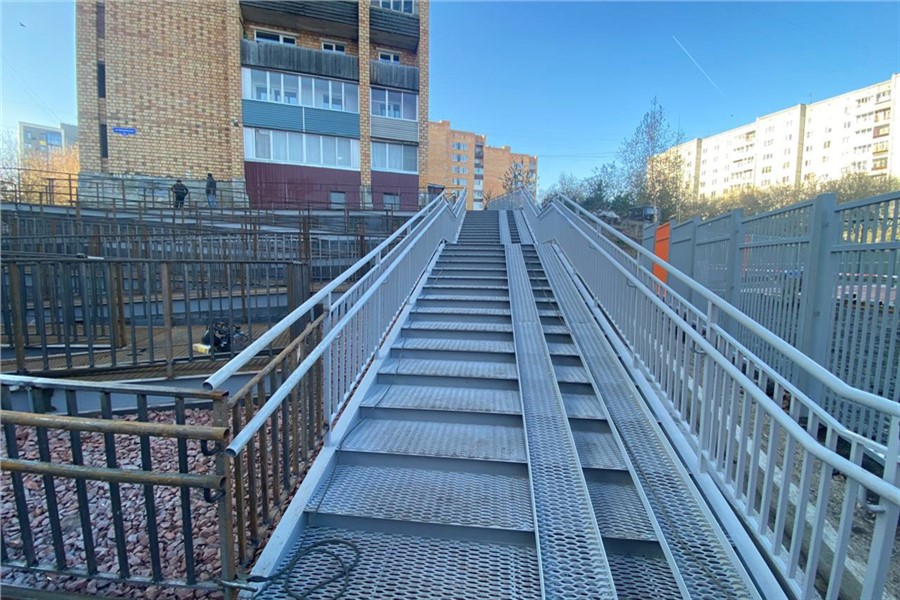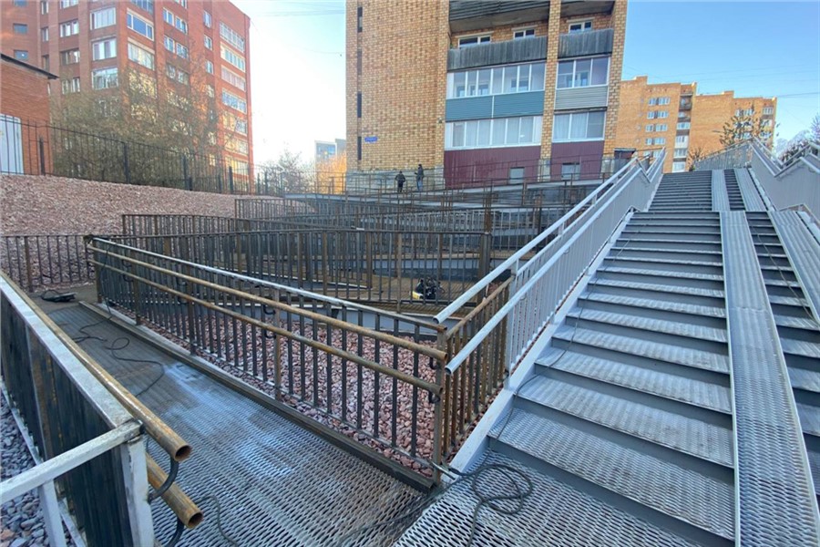 Сейчас на объекте завершаются последние штрихи: осталось приварить ограждения и поручни, а также покрасить их. Все работы будут завершены к концу месяца, но вы уже сейчас можете пользоваться новой лестницей и пандусом.
