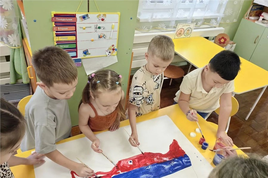 В мэрии рассказали, что дети узнают новое через творчество — с удовольствием рисуют, лепят и делают аппликации. Так, например, в детском саду № 169 Кировского района малыши аккуратно выводили линии триколора, чтобы украсить группы праздничными плакатами, а воспитанники детского сада № 313 Кировского района создали мультфильм, посвященный празднику.