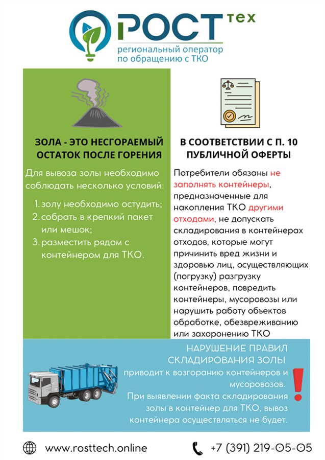 Региональный оператор настоятельно просит соблюдать правила обращения с золошлаковыми отходами. Для удобства жителей разработана памятка с инструкцией по обращению с золой.