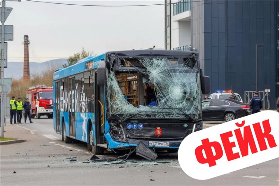 «Вот такая картинка рассылается по мессенджерам в Красноярске. Спешим вас успокоить. Ни один новый автобус на газомоторном топливе не попадал в подобную аварию. Так что эта картинка — фейк», — написала пресс-служба мэрии.
