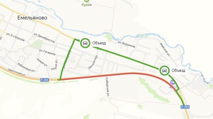 Ограничение введут на 798-м км в направлении Ачинск — Красноярск. Объехать закрытый участок водители легковых автомобилей смогут через поселок Емельяново по улицам Комарова и Московская и далее с выездом на федеральную трассу. Для большегрузного транспорта объезд не предусмотрен.