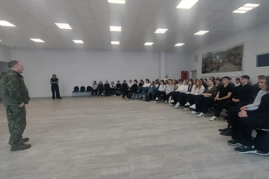 Бывший учитель, добровольно отправившийся на фронт, поделился с подростками историями о героических подвигах своих однополчан.