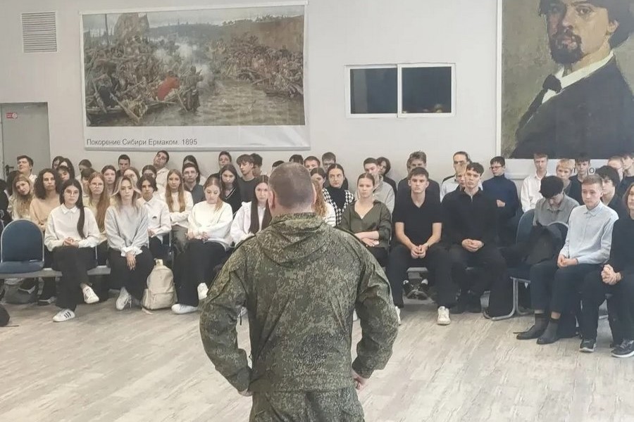 Участник специальной военной операции Тимур Абдрахимов с позывным Историк встретился с учениками школы № 1 в Советском районе Красноярска.