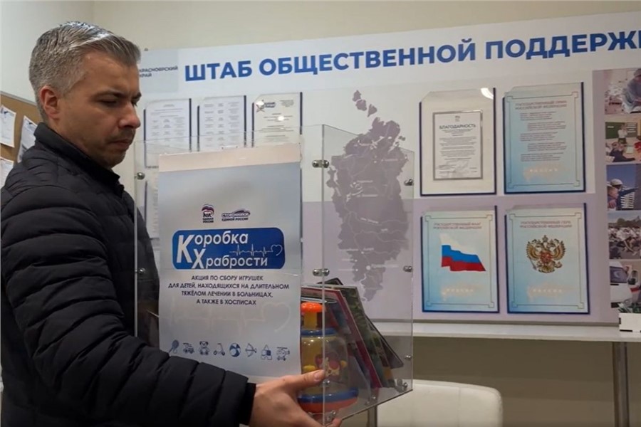 В штабе общественной поддержки, здании Общественной палаты Красноярского края в столице региона, а также на базе местных отделений партии «Единая Россия» установлены специальные боксы, в которые все желающие могут складывать игрушки, книги, наборы для досуга и творчества. Акция «Коробка храбрости» направлена на то, чтобы сделать пребывание детей в больницах менее тревожным и более комфортным. После болезненных процедур дети смогут взять из коробки понравившийся подарок.