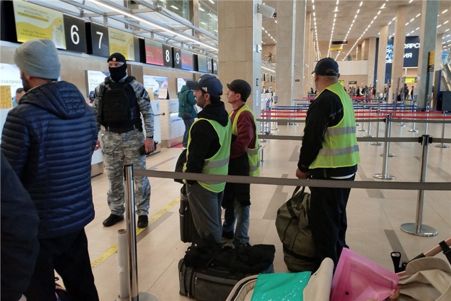 Сотрудники доставляли мигрантов из центра временного содержания в аэропорт Красноярска и сопровождали их до пункта пропуска через государственную границу. После этого их передавали сотрудникам пограничной службы УФСБ России по краю.