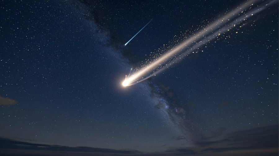 Метеорит вспыхнул в небе в 6:15 утра, оставив яркий след.