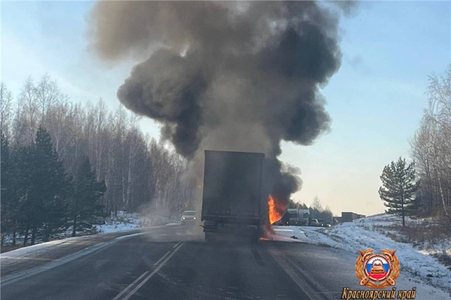 В Красноярске на федеральной трассе Р-255 «Сибирь» загорелась фура.