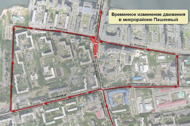 В красноярском микрорайоне Пашенный на неделю полностью перекроют для движения транспорта участок дороги по улице Семафорная в районе микрорайона Утиный плес — от перекрестка с улицей Карамзина до здания по улице Судостроительная, 137. Это связано с аварийно-восстановительными работами на сетях водоснабжения, сообщили в мэрии.