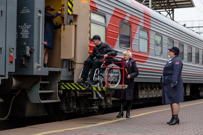 Сотрудники вокзалов обеспечивают весь необходимый спектр поддержки: встречают и сопровождают маломобильных пассажиров, помогают при оформлении проездных документов, сдаче багажа и посадке в поезд. При необходимости предоставляются кресло-коляска или каталка для лежачих больных. Все услуги выполняются бесплатно.