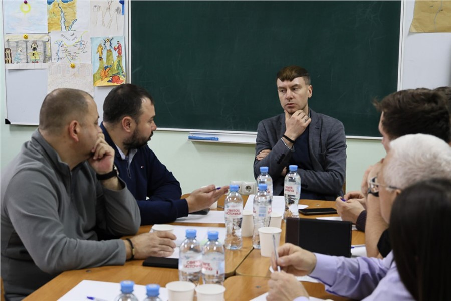 Участники обсудили ход работ и меры по ускорению их темпов. Были подведены текущие итоги: на данный момент полностью завершены наружные фасадные и внутренние черновые работы, началась укладка кафеля, близится к завершению установка спортивной площадки. В ближайшее время должны быть согласованы цветовые решения для кабинетов.