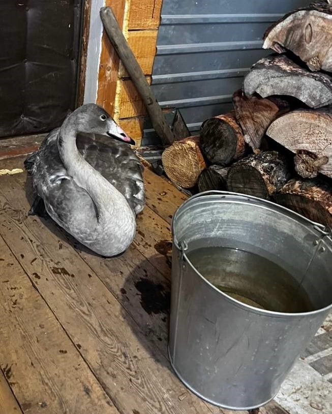 «Подойдя к месту падения, обнаружил, что птица, похожая на гуся или лебедя, практически не двигалась и была покрыта коркой льда. Он забрал её домой и обогрел. Некоторое время птица не подавала признаков жизни, но примерно через час стала приходить в себя — поднимать голову, вставать на лапы и издавать звуки», — рассказали в пресс-службе.