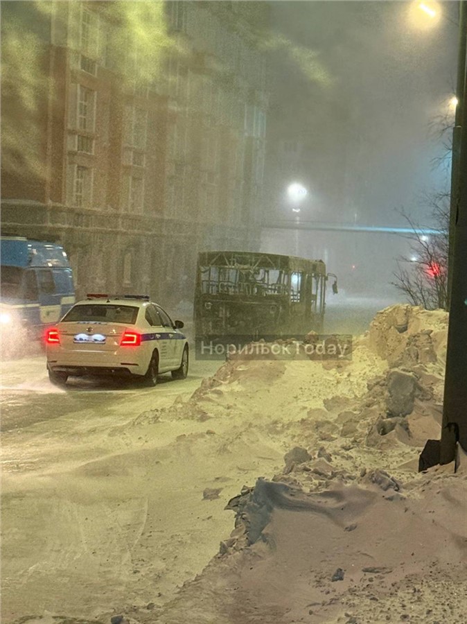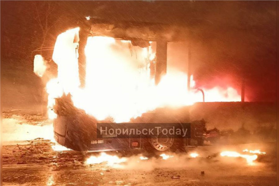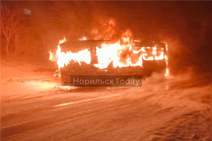 В Центральном районе Норильска на улице 50 лет Октября сгорел автобус. Фотографии с места происшествия очевидцы публикуют в соцсетях.