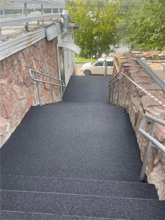 Также рабочие привели в порядок лестницы по следующим адресам: улица Северо-Енисейская, 52; Лиды Прушинской, 5а; Норильская, 3; 40 лет Победы, 20; Бограда, 21; Александра Матросова, 2а; Можайского, 21а; Энергетиков, 35 и Марковского, 80. Где-то вместо заасфальтированных ступенек сделали бетонные и оборудовали их противоскользящим резиновым покрытием, на других объектах обновили аварийные ступени, также в дополнение установили новые металлические поручни и аппарели.