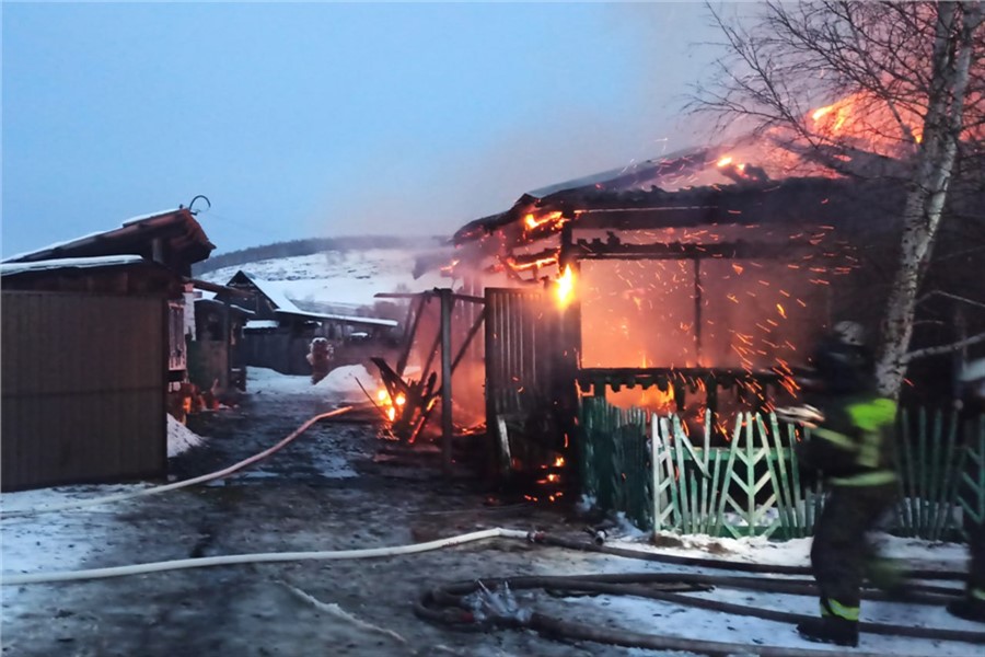 «На момент прибытия пожарных подразделений наблюдалось открытое горение квартиры № 2 с пристроенной верандой по всей площади, а также кровли квартиры № 1. В условиях сильного задымления звено газодымозащитной службы федеральной пожарной службы провело обследование квартиры, где, по информации местных жителей, мог находиться человек», — рассказали в ведомстве.