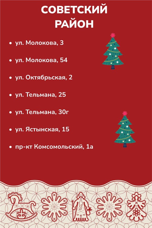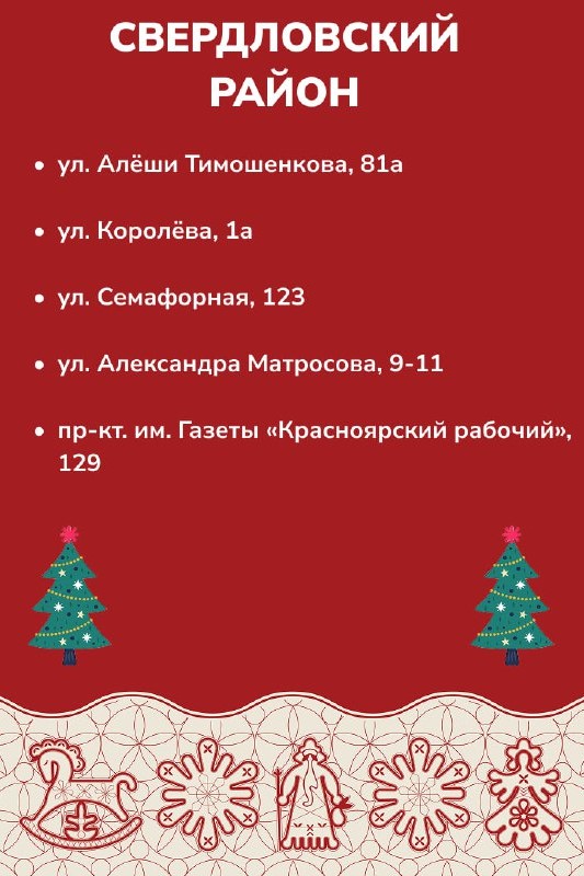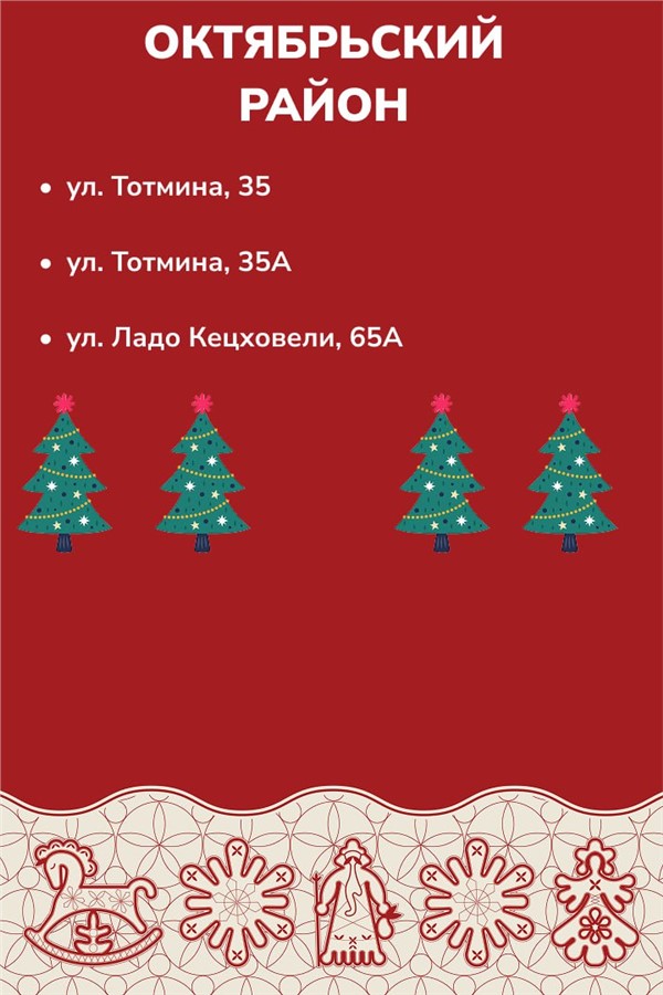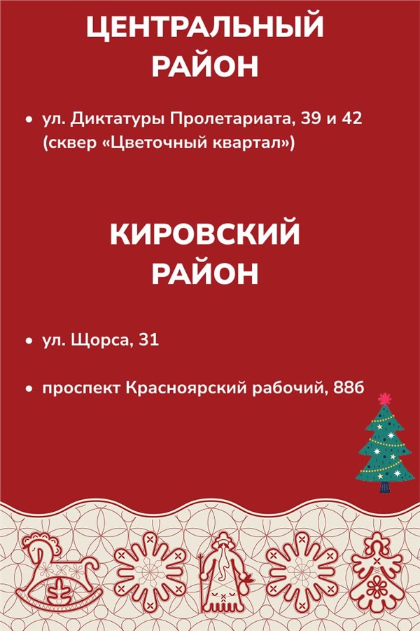 Всего в этом году в Красноярске определены 52 адреса в разных районах города, где можно будет торговать елками и новогодними сувенирами. На сегодняшний день предпринимателями занято 26 точек продаж. На свободные адреса можно еще заявиться.