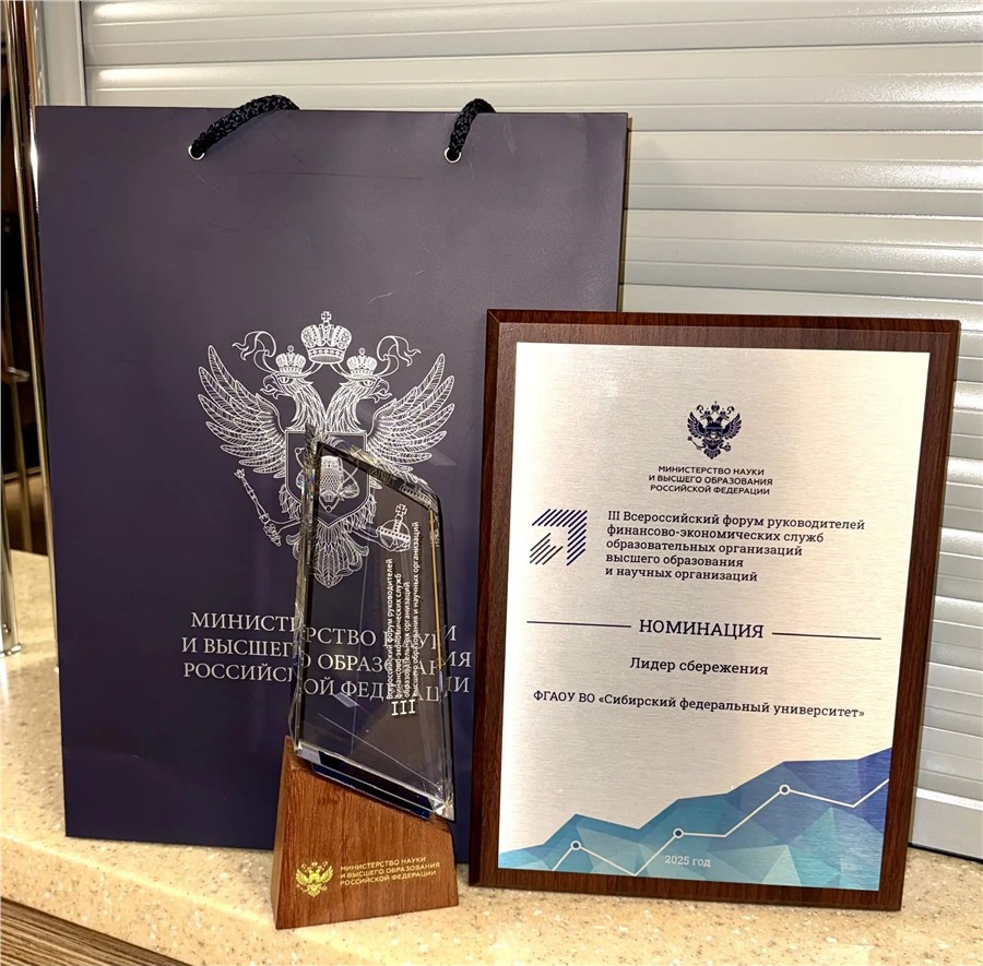 Сибирский федеральный университет получил награду Минобрнауки России на III Всероссийском форуме руководителей финансово-экономических служб образовательных организаций высшего образования и научных организаций.