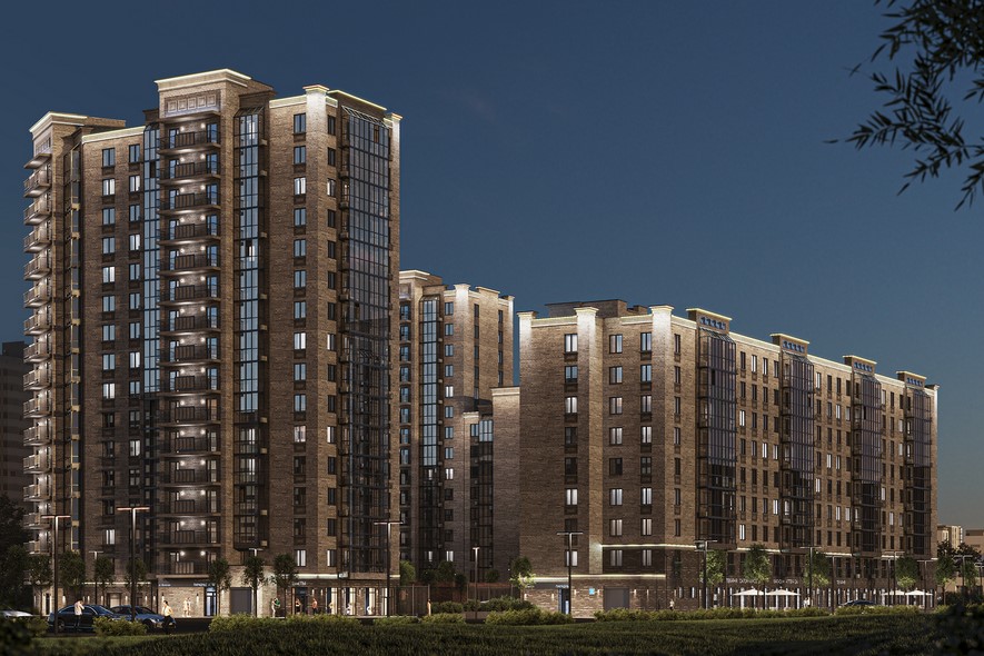 Жилой комплекс представлен отдельностоящим кварталом переменной этажности, периметр которого формирует внутренний приватный двор только для жителей и активные улицы снаружи с собственной инфраструктурой и ландшафтным благоустройством.