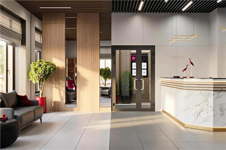 Служба управления и сервиса обеспечивает безопасность и спокойствие собственников. В доме отдельный парадный вход со службой администрирования и охраны. В парадном выделена мягкая зона ожидания, с удобной мебелью и дизайнерской отделкой. Все общественные пространства от лобби до лестничной клетки выполнены из добротных материалов по индивидуальному дизайн-проекту.