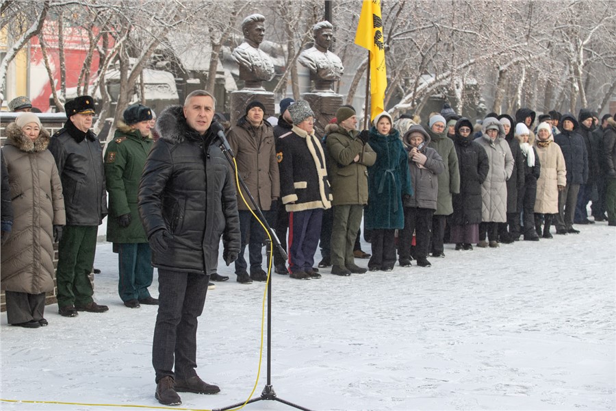 Председатель Законодательного Собрания Алексей Додатко поблагодарил организаторов выставки и поздравил курсантов с памятным днём: «Вглядываясь в лица героев, мы видим истоки того мужества, патриотизма, силы духа, которые сегодня дают нам уверенность в победе. Перекличка поколений делает сильнее не только наших бойцов, обеспечивающих безопасность страны и наш суверенитет, но и всё наше общество, которое сплотилось, чтобы в очередной раз доказать право России идти своим историческим путем, защищать свои ценности и интересы».