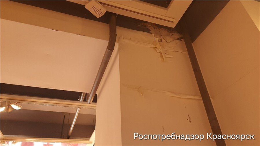 Помимо этого, в магазине выявили нарушения санитарных требований. Так, покрытие стен торгового зала находится в неудовлетворительном состоянии, не позволяющем качественно провести влажную уборку: поврежден штукатурно-окрасочный слой и имеются следы протекания.