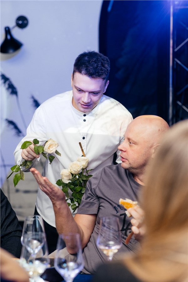 Переходный момент. Трюфельная водка, разлитая в бутоны роз, наносится на руки, подготавливая гостей к следующему курсу.