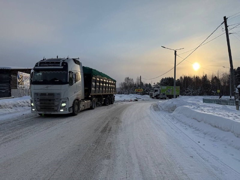 В Енисейском округе Красноярского края в результате столкновения кроссовера с двумя грузовиками пострадали три человека.