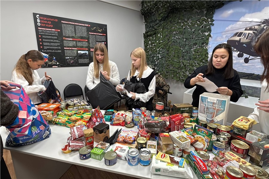 Одновременно с поздравлениями идет работа по сбору гуманитарной помощи для защитников, чтобы наши бойцы почувствовали тепло и заботу в канун Нового года. «Посылки добра» с теплыми вещами, новогодними сувенирами-оберегами, продуктовыми наборами, средствами личной гигиены, десятки душевных писем и рисунков с пожеланиями собирают ученики и коллективы образовательных учреждений, общественные организации и сами семьи.