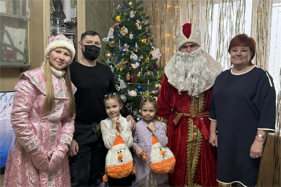 Отдельное внимание близким бойцов уделяют главы районов, к семье Резаевых праздник пришел прямо домой. Руководитель администрации Советского района Елена Ланина вместе с Дедом Морозом поздравила дочек-погодок Таисию и Василису бойца Антона Резаева. Глава семьи был штурмовиком, после ранения вернулся домой — теперь помогает фронту и ребятам.