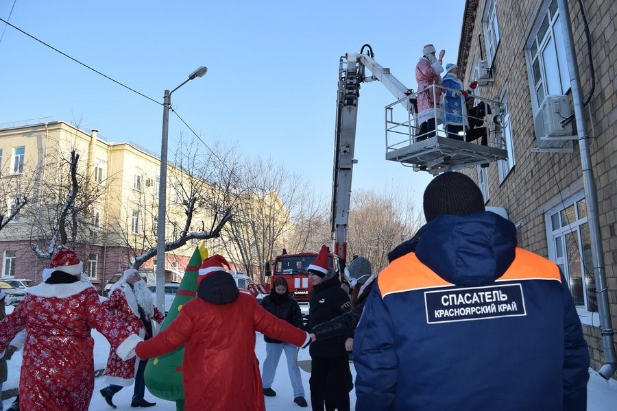 Спасатели из Красноярска поздравили с Новым годом пациентов педиатрического отделения межрайонной клинической больницы № 20 имени И. С. Берзона. Об этом рассказали в