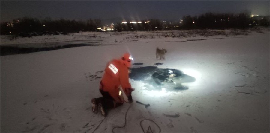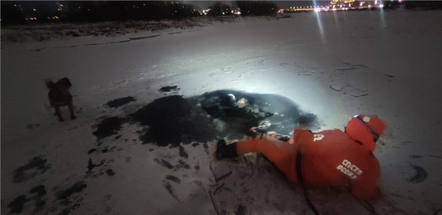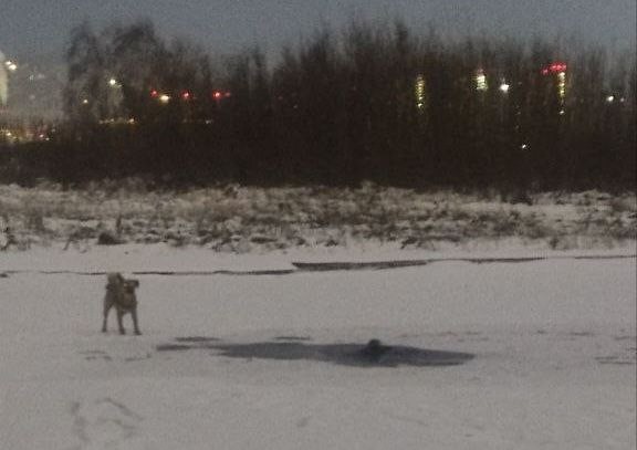 Несчастный случай произошел 28 декабря вечером. Очевидцы увидели, что собака скулит, бегает и лает около полыньи и позвонили по телефону 112.