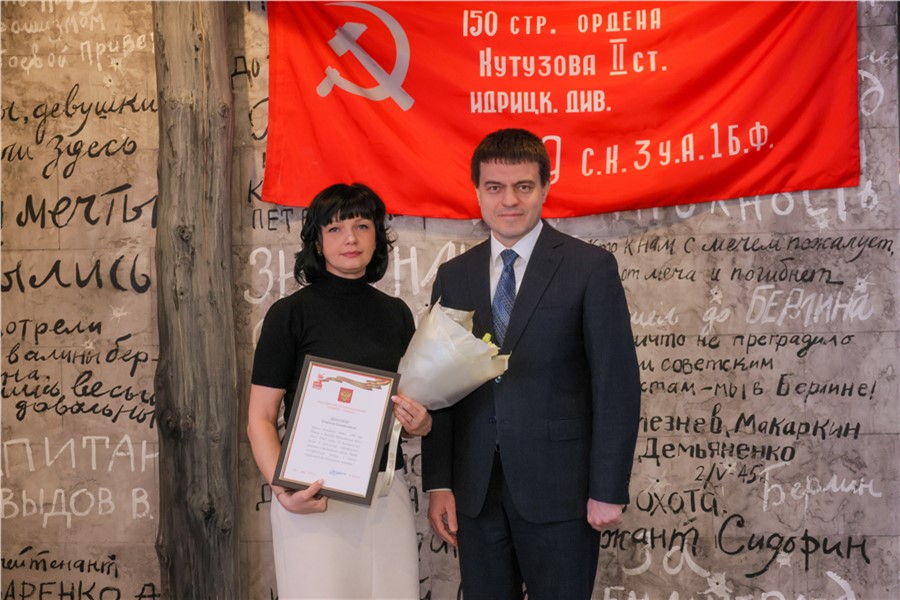 Памятную медаль и грамоты Российского организационного комитета «Победа» за подписью главы государства Владимира Путина губернатор передал 13 жителям края. Среди них — руководитель регионального отделения движения «Волонтеры Победы» Марина Дернова. Она отметила, что главная миссия движения — это, прежде всего, сохранение исторической правды и уважительного отношения к истории Великой Отечественной войны. В Красноярском крае волонтерами Победы стали более 18 тыс. человек. Все они принимали активное участие в проведении и сопровождении мероприятий, приуроченных к юбилею Победы.