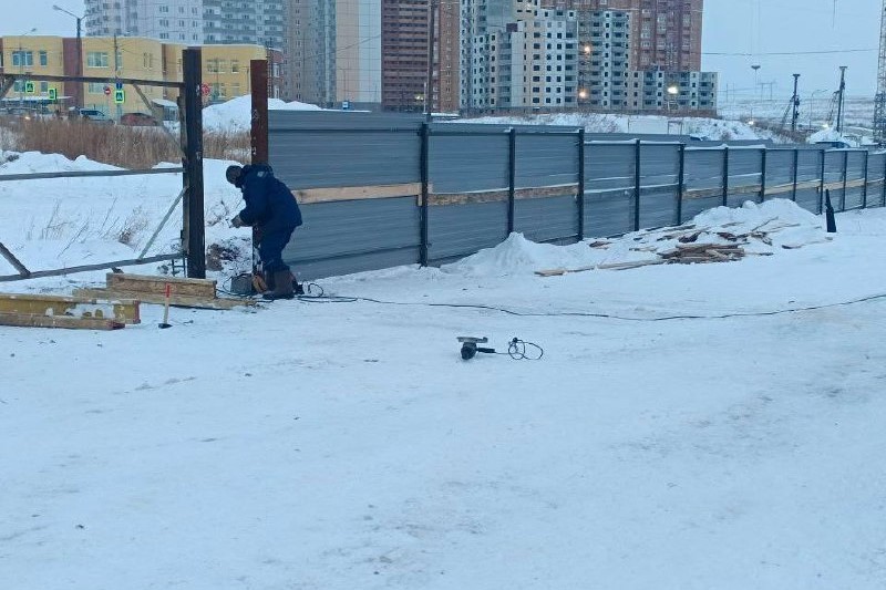 В Красноярске в микрорайоне Солнечный начали огораживать площадку для строительства школы.
