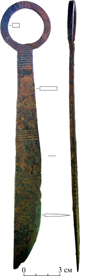 Подобные ножи в других территориях не встречаются, отмечают представители СФУ. Их навершия оформлены в виде петли или кольца. Такая форма встречалась в Евразии только в эпоху Хунну (II в. до н.э. — II в. н.э.), но в в енисейской тайге они «задержались» вплоть до XIV века.