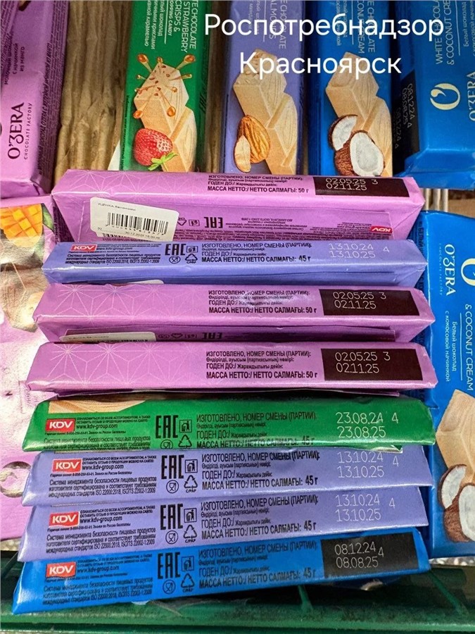 В Ачинске в магазине продавались шоколадные батончики с истёкшим в 2025 году сроком годности. Об этом рассказали в Роспотребнадзоре по Красноярскому краю.