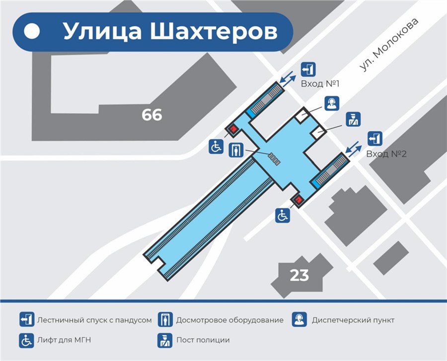 - «Улица Шахтеров» будет расположена в створе улицы Молокова с выходами на обе стороны улицы к жилым домам, автобусным остановкам.