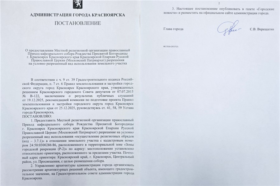 Мэр Красноярска Сергей Верещагин предложил провести еще одно обсуждение по строительству собора на Стрелке. Оно пройдет на градостроительном Совете.