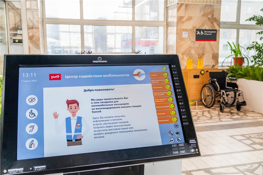 Отметим, что на крупных вокзалах Красноярской магистрали есть вся необходимая инфраструктура для комфортного пребывания маломобильных пассажиров: пандусы и подъемники, кассовые окна с заниженным прилавком, специализированные санитарные комнаты и комнаты отдыха, таблички со шрифтом Брайля, мнемосхемы, индукционные системы для передачи звуковых сигналов на слуховые аппараты.