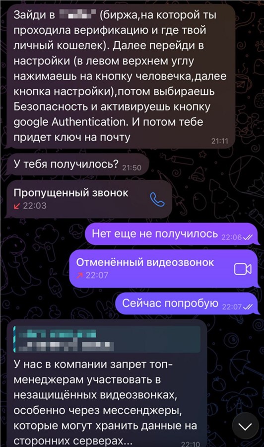 «Сначала потерпевшая вложила все свои личные сбережения, а в дальнейшем, находясь в отпуске, под влиянием мужчины оформила три кредита в различных банках. В течение 8 месяцев жительница Дудинки „инвестировала“, рассчитывая получить прибыль, но в дальнейшем обнаружила, что средства заморожены, а незнакомец перестал выходить на связь. Только тогда она поняла, что ее обманули, и обратилась в полицию. Общая сумма потерянных денежных средств составила свыше 4,5 миллионов рублей», — рассказали в ГУ МВД и показали переписку женщины с мошенником, уточнив, что лично они не встречались.