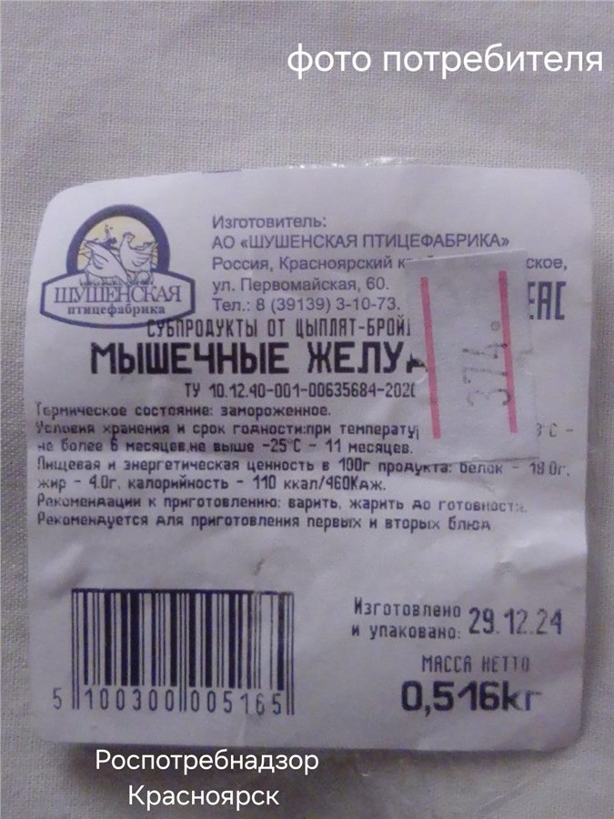 В ведомстве рассказали, что к ним обратился покупатель с жалобой на магазин во 2-м микрорайоне Игарки, в котором он приобрел просроченные куриные желудки. Только дома мужчина обнаружил, что срок годности продукта истек ещё полгода назад.