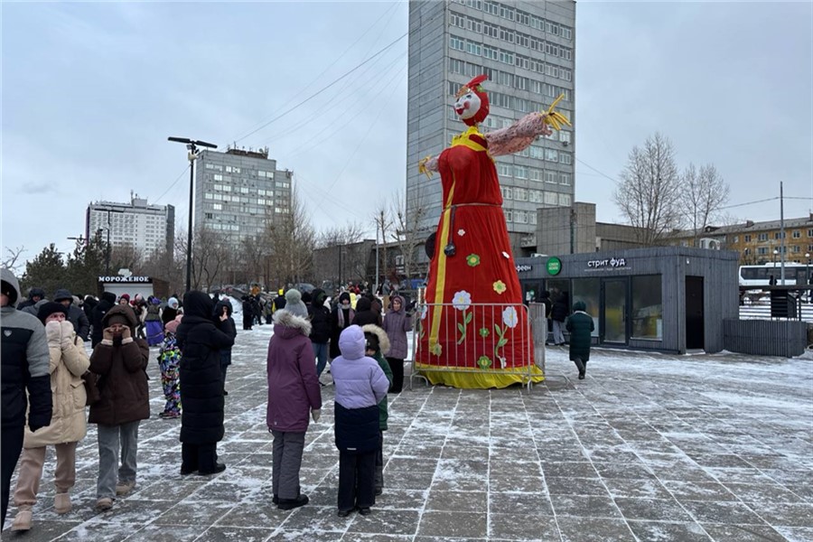 В сквере Чернышевского красноярцы согреваются активными забавами — там проходят фестиваль блинов, перетягивание каната и покорение ледяного столба. На Ярыгинской набережной установили самое высокое чучело Масленицы — шесть метров. Там работают тематические локации, мастер-классы и точки с угощениями.
