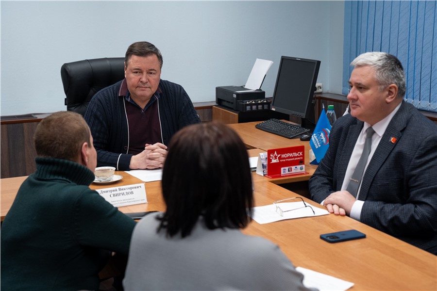 Заместитель председателя Законодательного Собрания Красноярского края Дмитрий Свиридов и председатель комиссии по городскому хозяйству норильского Горсовета Роман Сербин провели личный прием граждан на площадке общественной приёмной «Единой России».