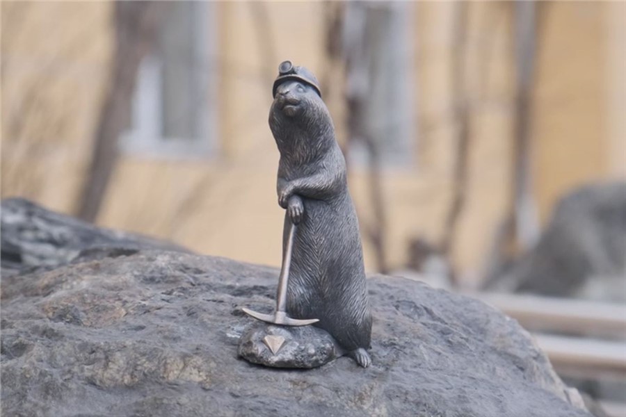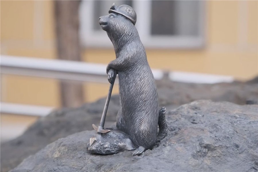 В Красноярске установили нового суслика — на этот раз у входа в Институт цветных металлов Сибирского федерального университета. Фигурка изображает грызуна с кайлом в руках и в каске горного инженера.