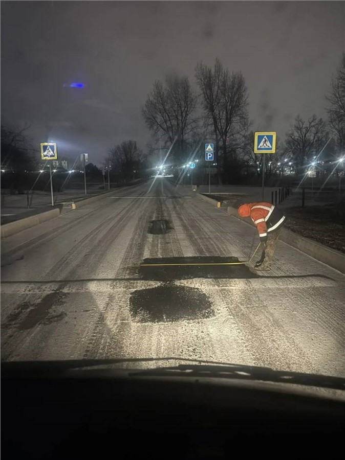 Ямы на проездах заделали специалисты «САТП» с использованием смеси литого асфальта. Эта технология позволяет оперативно восстановить покрытие, не дожидаясь установления устойчивых положительных температур.