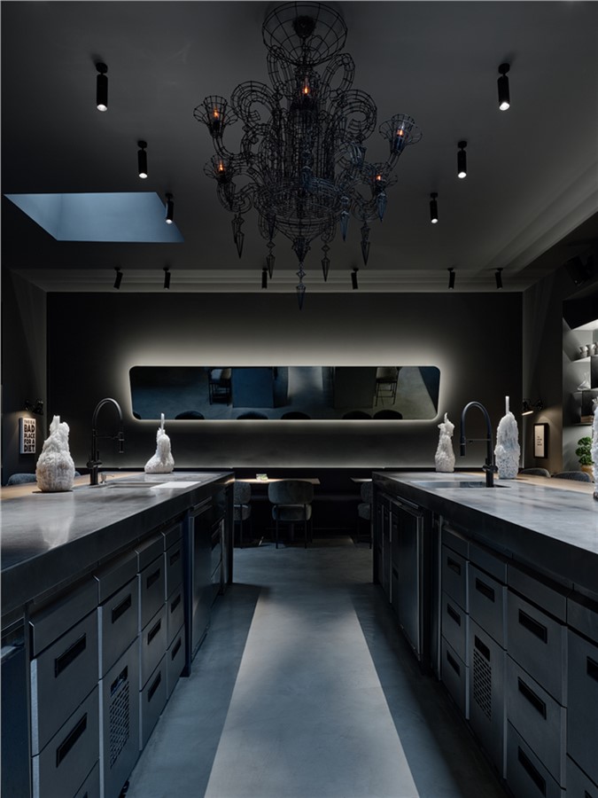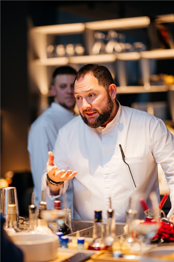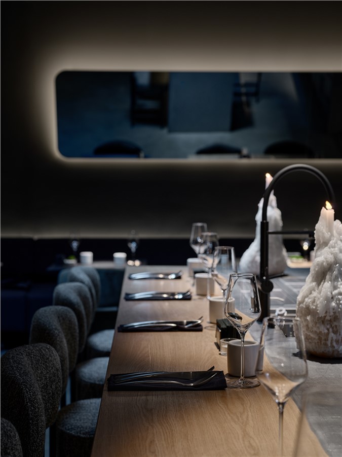 Новый зал стал самым приватным из них. Он представляет собой отдельное пространство с открытой кухней и контактным баром. Гостям предлагают не только провести мероприятие, но и вовлечься в процесс: наблюдать за приготовлением блюд, общаться с шефом и барменом.
