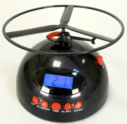 Вертолёт взлетает при срабатывании сигнала будильника. Пока пользователь не вернет вертолёт на место, будильник будет звонить.